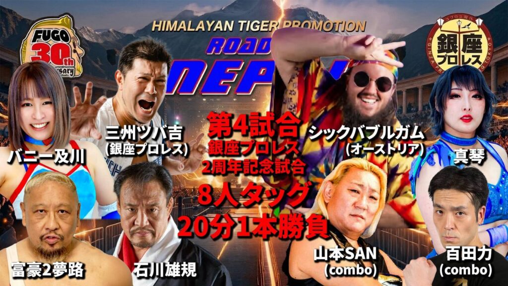 8人タッグ20分1本勝負石川雄規&富豪2夢路&三州ツバ吉(銀座プロレス)&バニー及川